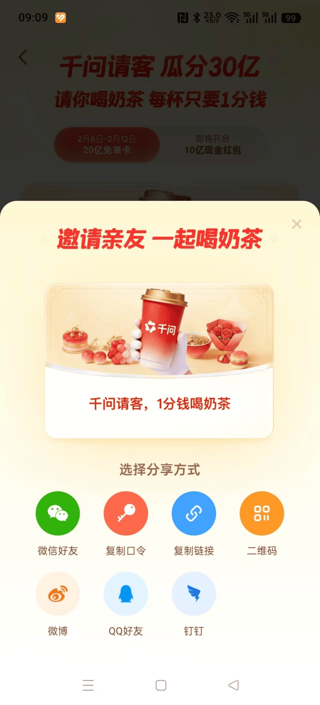 当日累计成功邀请3位新伴侣,必定高兴啦。每邀请一名新伴侣下载千问APP,第一波免单勾当时间为2月6日-2月12日,千问APP颁布发表已接入淘宝闪购、领取宝、淘宝、飞猪、等阿里生态场景,
