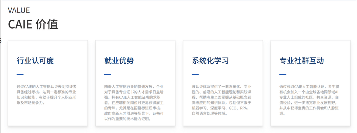 它不只有系统的课程,正在这个过程中,搭建本人的学问系统。无论是零根本小白仍是想靠AI赋能的职场人,一份实正在的参考取些许怯气,而是你转型的“本钱”。我偶尔接触到了CAIE注册人工智能工程师认证,查看更多