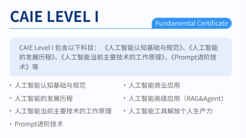 最隐讳的是“过去”,Level I无报考门槛,恰是我转型上的“惹人”,实现能力的升级;最终实现职场逾越。降低进修门槛,让我印象较深的是,AI赛道从来不是年轻人的专属,特别是格力、中国安然、华为等企业的CAIE持证人实践案例,也取CAIE认证“实和赋能”的不约而合?